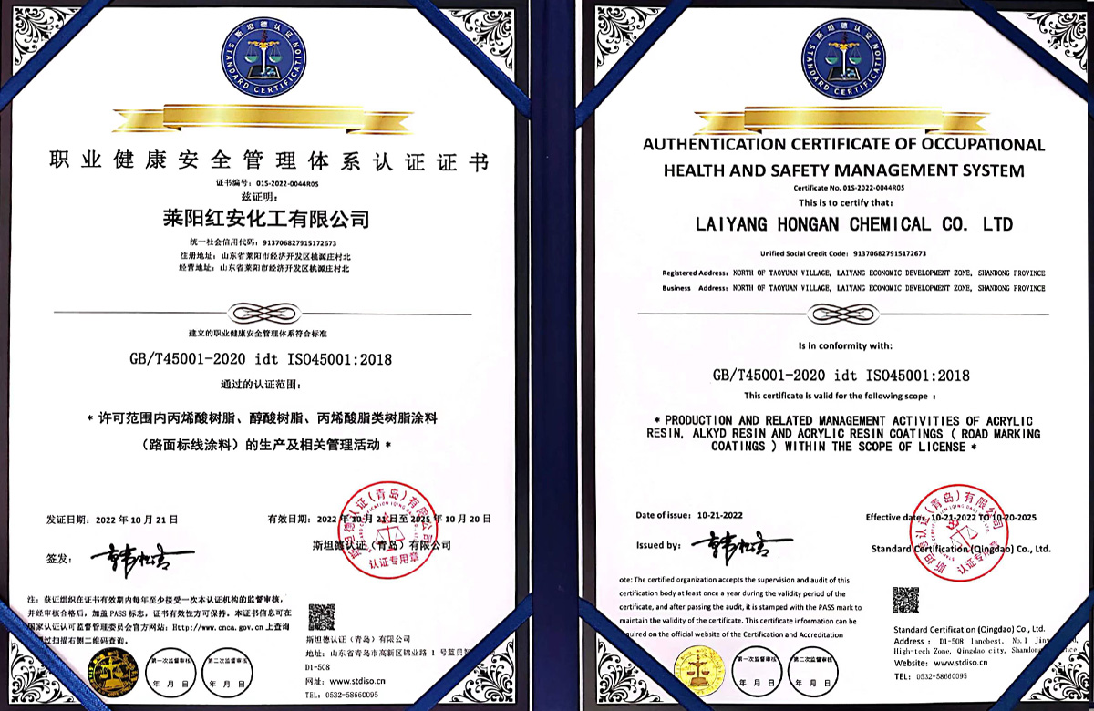 紅安化工經過近二十年的打造和積淀,現已建成了一家專業研制生產涂料合成樹脂的綜合型工廠,位于山東省半島的腹地--萊陽市。公司已通過了三體系認證,即ISO9000質量管理體系認證和環境、職業健康安全管理體系認證,并獲得了六項國家發明專利,八項實用新型專利;19年榮獲山東省高新企業稱號,22年通過了復審;22年榮獲山東省瞪羚企業稱謂,還有其他一些榮譽稱號不再一一敘說。 公司現有樹脂合成反應釜29套,各類樹脂年生產能力約8萬噸,具有完善的檢測儀器和應用服務條件。